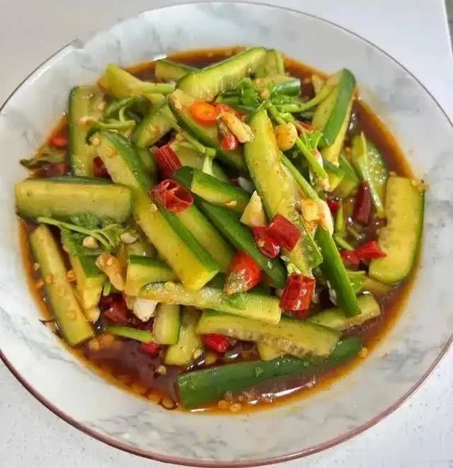 食材:黄瓜1根、蒜末5g、生抽1勺、香醋半勺、盐1g、辣椒油少许(可选)、白糖少许(可选)