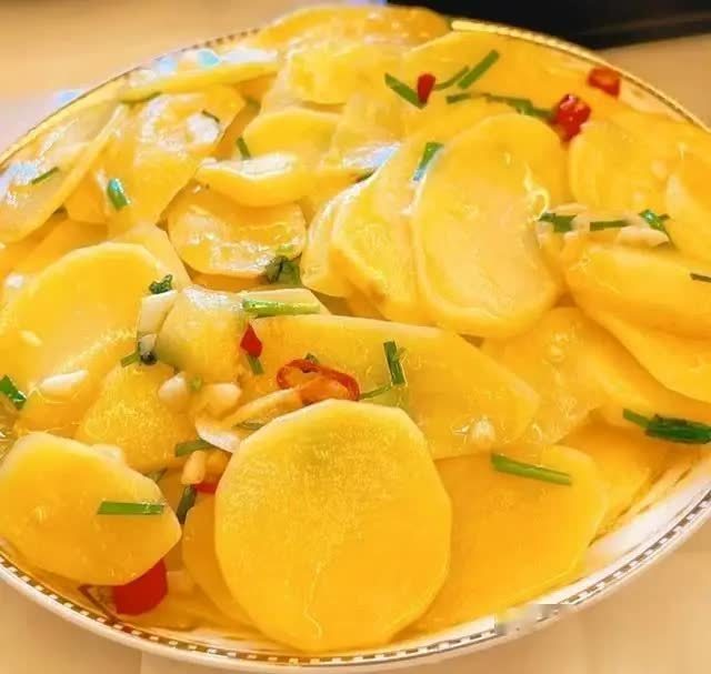 6. 继续翻炒至土豆片微微透明、变软但不烂,就可以出锅装盘了。