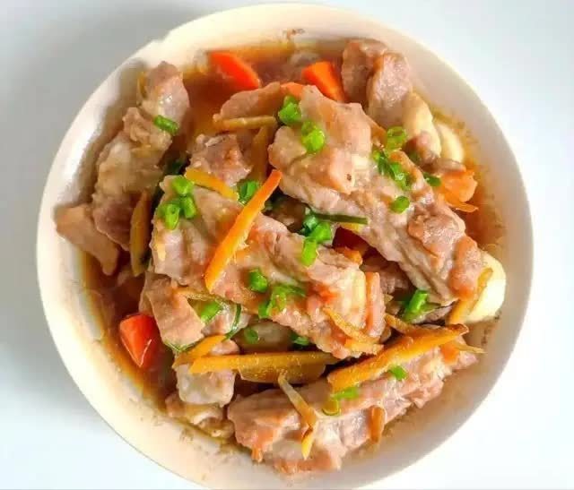 1. 处理排骨:排骨剁成小段,用清水浸泡20分钟,中途换两次清水,泡出里面的血水,减少腥味,泡好后捞出,用厨房纸擦干表面水分,放入碗中备用。