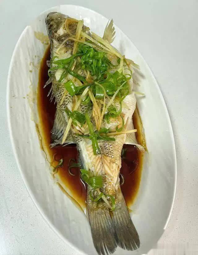 材料:鲈鱼1条、葱、姜、蒸鱼豉油、料酒、盐、食用油。