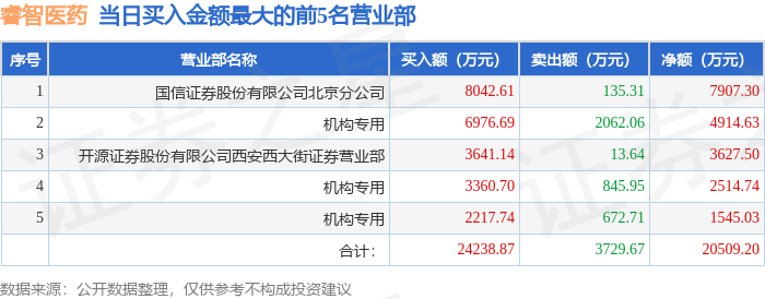 在线开户股票 7月29日睿智医药(300149)龙虎榜数据: 机构净买入8974.41万元